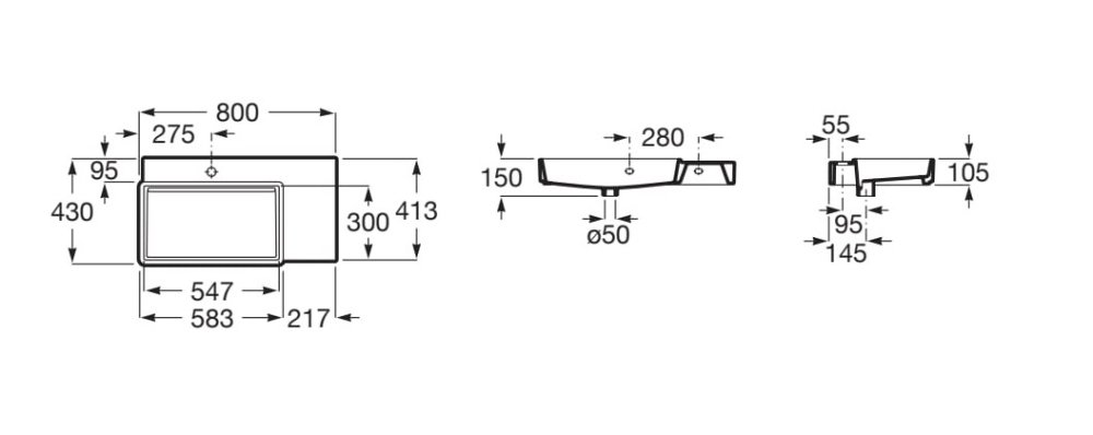 Rozmery (DxŠxV): 800 × 430 × 150 mm – optimálna veľkosť pre stredné kúpeľne.