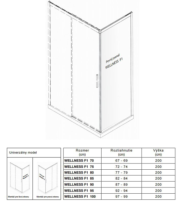 Pevná stena do kombinácie, predáva sa iba so zasúvacími dverami WELLNESS B2.