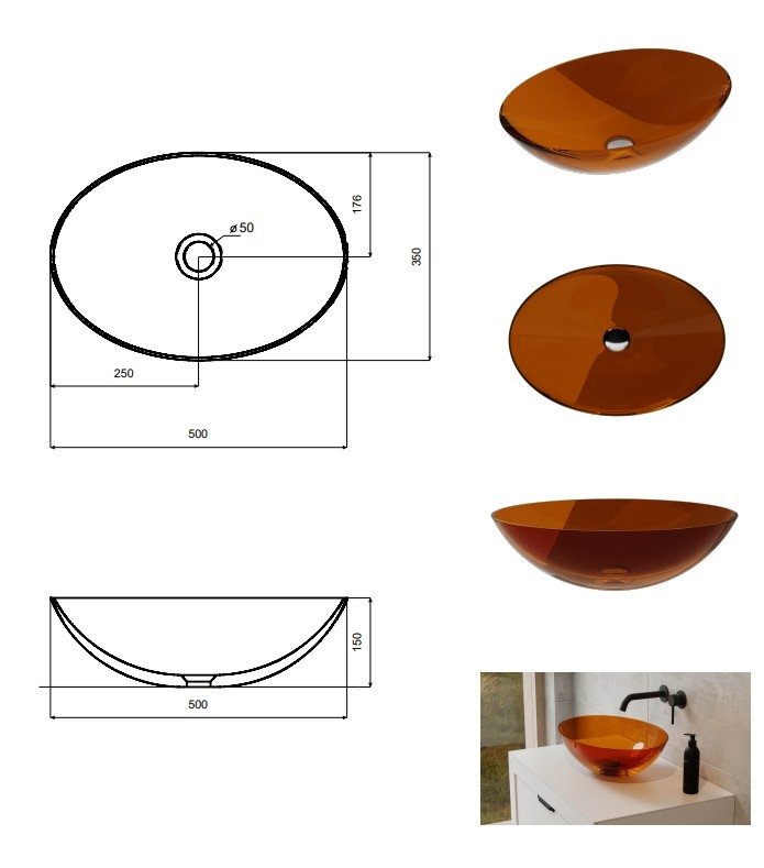 Besco ANYA CARBON GREY umývadlo na dosku 50 x 35 cm #UMA-50-CGB - klik-klak čierny