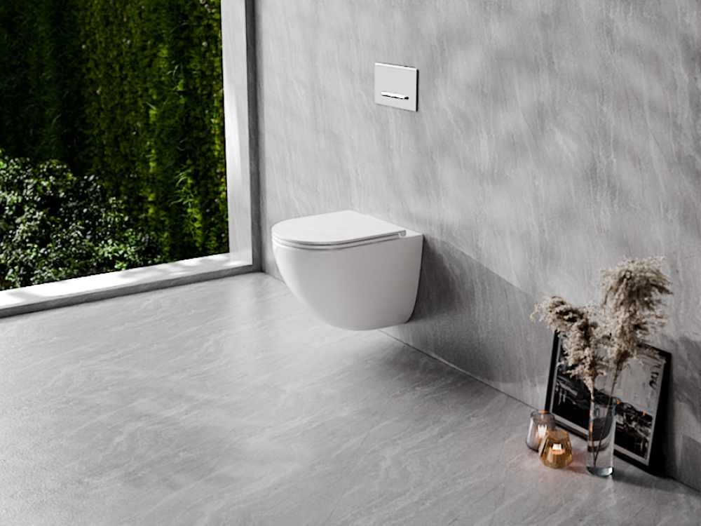 Súčasťou je aj kvalitné sedadlo Aspen White z odolného duroplastu so systémom soft-close (tiché zatváranie) a rýchlym vypínaním jedným kliknutím, čo značně uľahčuje čistenie aj servis. Skrytý systém montážnych prvkov dopĺňa minimalistický dizajn bez viditeľných prvkov a vytvára tak esteticky čistý výsledok.