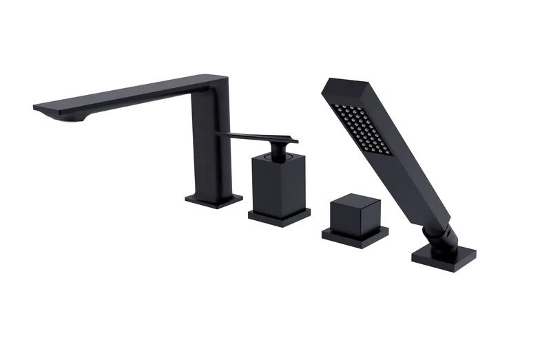 Moderná 4-otvorová vaňová batéria Besco Aspira v čiernom matnom prevedení je elegantným riešením pre štýlové kúpeľne. Ponúka montáž na okraj vane a kompletnú výbavu vrátane výtokového ramienka, ručnej sprchy s hadicou, držiaka a prepínača vaňa/sprcha. Vyznačuje sa kvalitným mosadzným telom, keramickou kartušou pre plynulé ovládanie a moderným dizajnom s dôrazom na minimalizmus a funkčnosť.