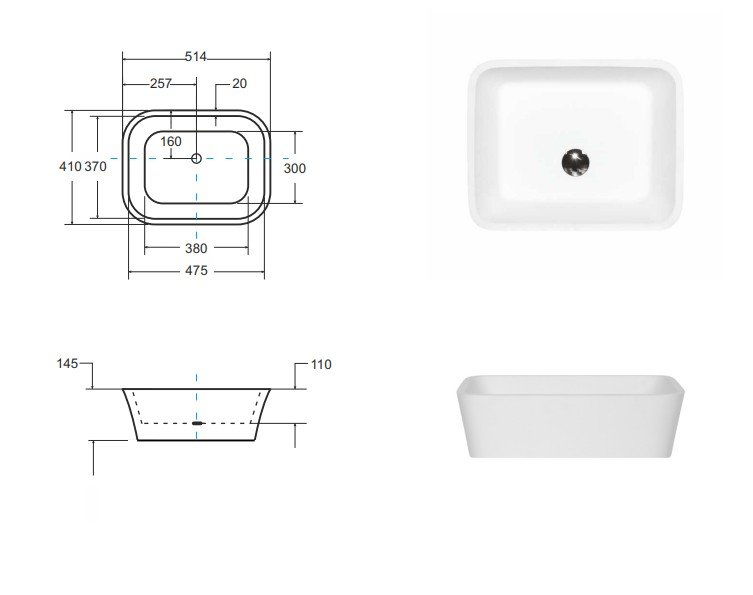 Besco ASSOS B&W umývadlo na dosku 52 x 41 cm