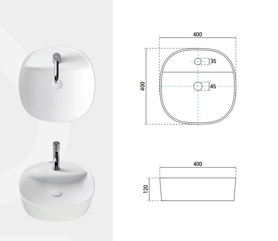 Besco CeraBe ANES CERA-LINE White keramické umývadlo na dosku 40 x 40 cm UNC-40-ANB - 40 cm