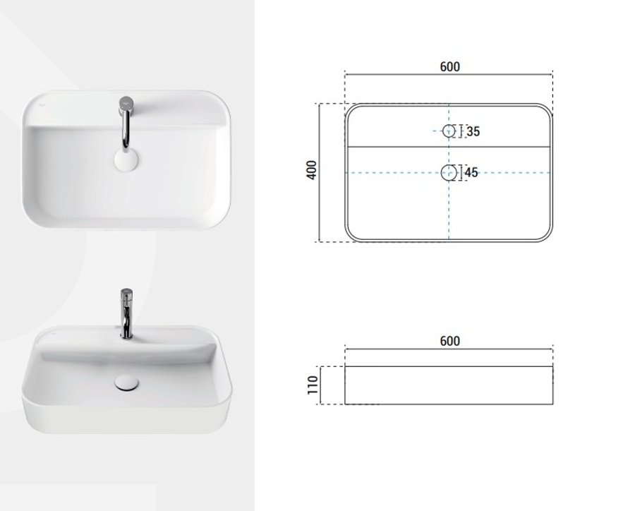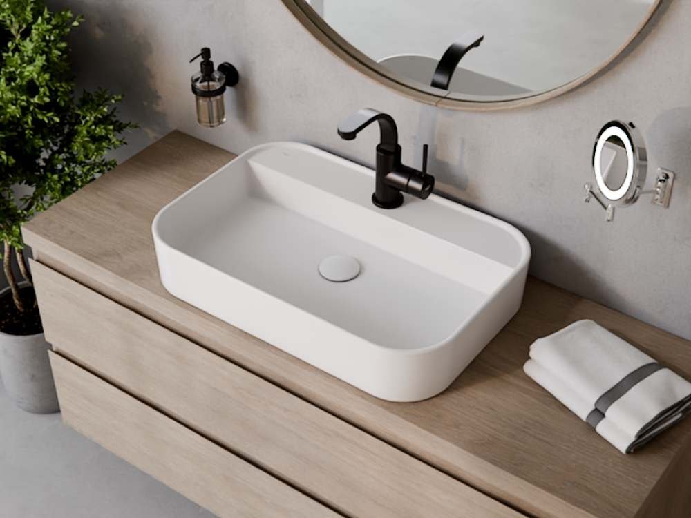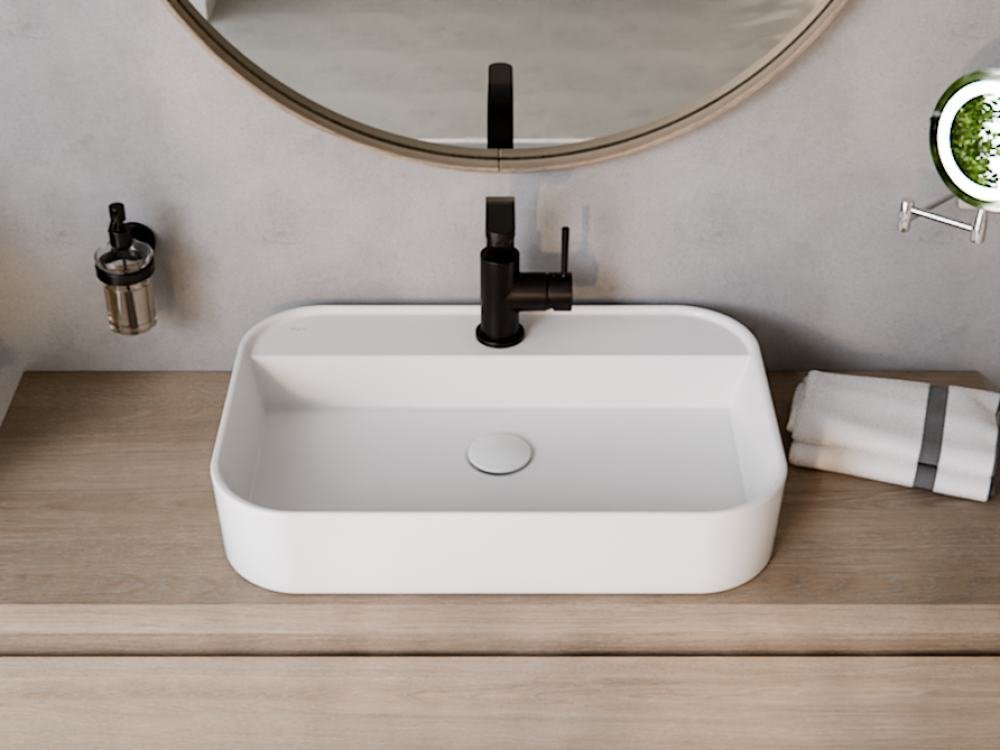 Dizajn umývadla je premyslený tak, aby poskytoval rovnováhu medzi funkčnosťou a estetikou – či už ho umiestnite ako stredobod miestnosti alebo do elegantného kúpeľňového nábytku. Vďaka kompaktnej veľkosti 60 × 40 cm je ideálne pre menšie i veľké priestory.