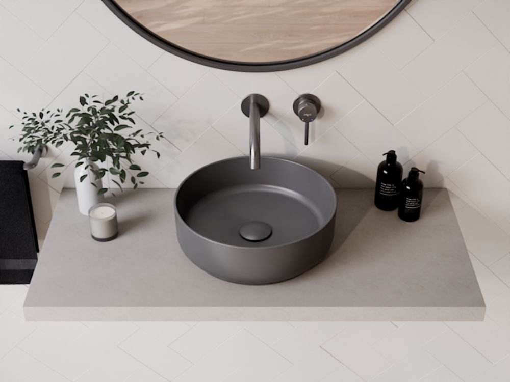 Umývadlo BESCO Clea Cera-Line 34,5 Gun Metal predstavuje spojenie minimalistického dizajnu a funkčnosti pre každodenné používanie. Jeho kompaktné rozmery Ø 34,6 cm × výška 11,4 cm sú ideálne pre menšie kúpeľňové priestory alebo ako samostatná umývacia zóna na toalete. Okrúhly tvar s ultra tenkým okrajom opticky zväčšuje priestor a pôsobí elegante.
