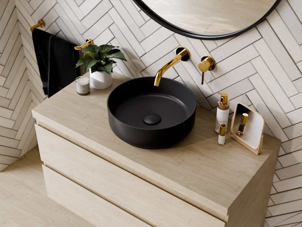 Stylové a kompaktne riešené umývadlo BESCO Clea Cera-Line 34,5 Matt Black je ideálnou voľbou pre kúpeľne a toalety, kde je priestor limitovaný, ale požaduje sa vysoká kvalita a estetický vzhľad. Vyrobené z odolnej sanitárnej keramiky Besco CeraBe, poskytuje jednoduchú údržbu a dlhodobú životnosť bez predvŕtaného otvoru na batériu