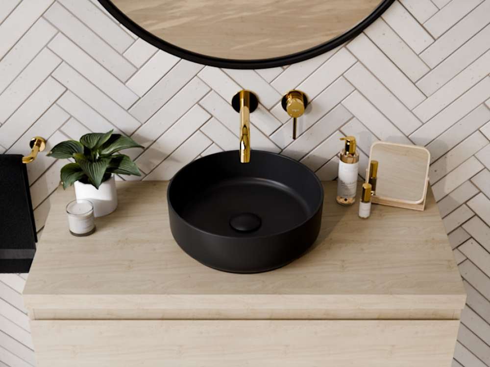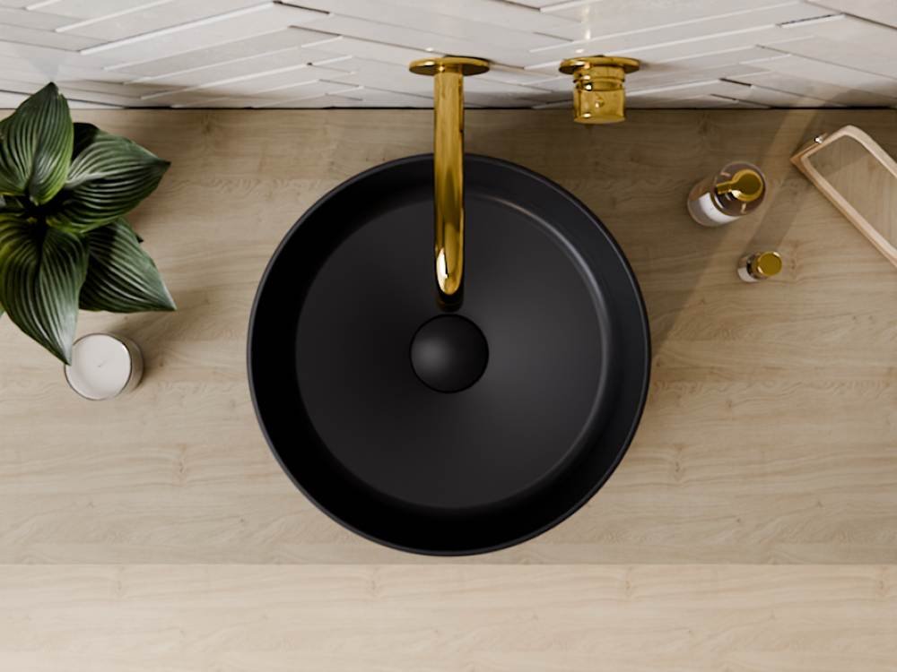 Umývadlo BESCO Clea Cera-Line 34,5 Matt Black predstavuje spojenie minimalistického dizajnu a funkčnosti pre každodenné používanie. Jeho kompaktné rozmery Ø 34,6 cm × výška 11,4 cm sú ideálne pre menšie kúpeľňové priestory alebo ako samostatná umývacia zóna na toalete. Okrúhly tvar s ultra tenkým okrajom opticky zväčšuje priestor a pôsobí elegante.