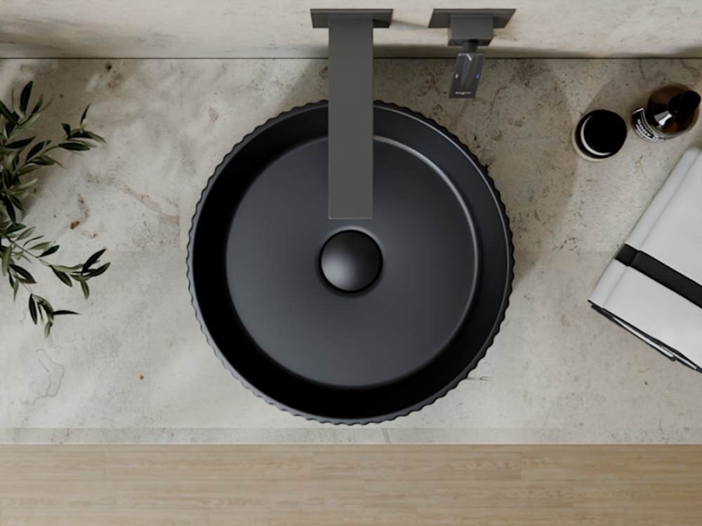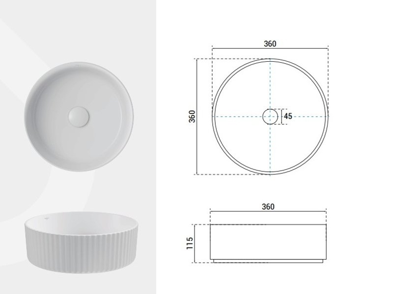 Vďaka univerzálnemu okrúhlemu tvaru (Ø 36 cm) sa umývadlo výborne hodí na väčšinu stolových dosiek a priestorov. Neobsahuje predvŕtaný otvor pre batériu, čo vám umožní voľne si zvoliť batériu podľa svojho štýlu a potrieb. Ide o ideálne riešenie pre dizajnové kúpeľne, hotelové izby aj moderné domáce wellness zóny.