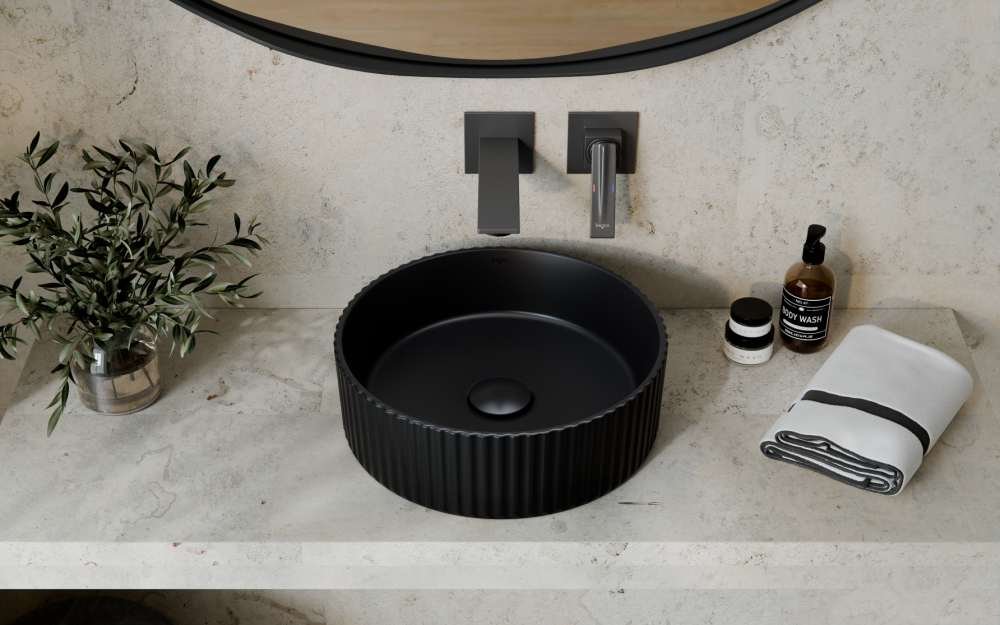 Besco Clea Ryfle Cera-Line 36 Matt Black – elegantné pultové umývadlo s moderným dizajnom a prémiovým keramickým povrchom Besco CeraBe. Perfektný doplnok do každej kúpeľne, ktorá chce spojenie štýlu a funkčnosti.