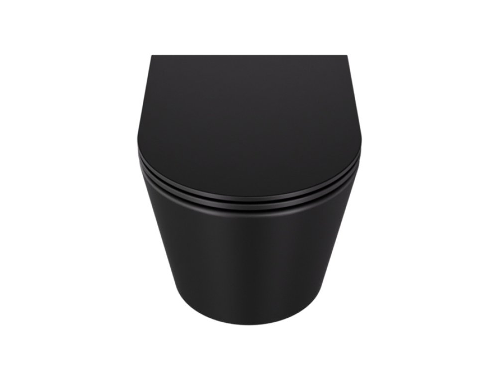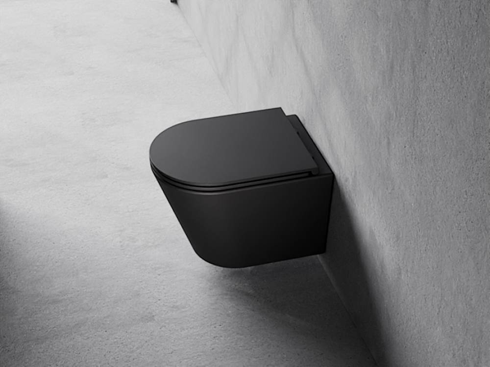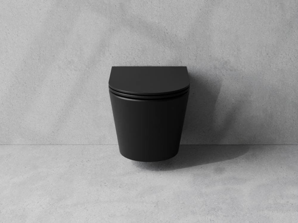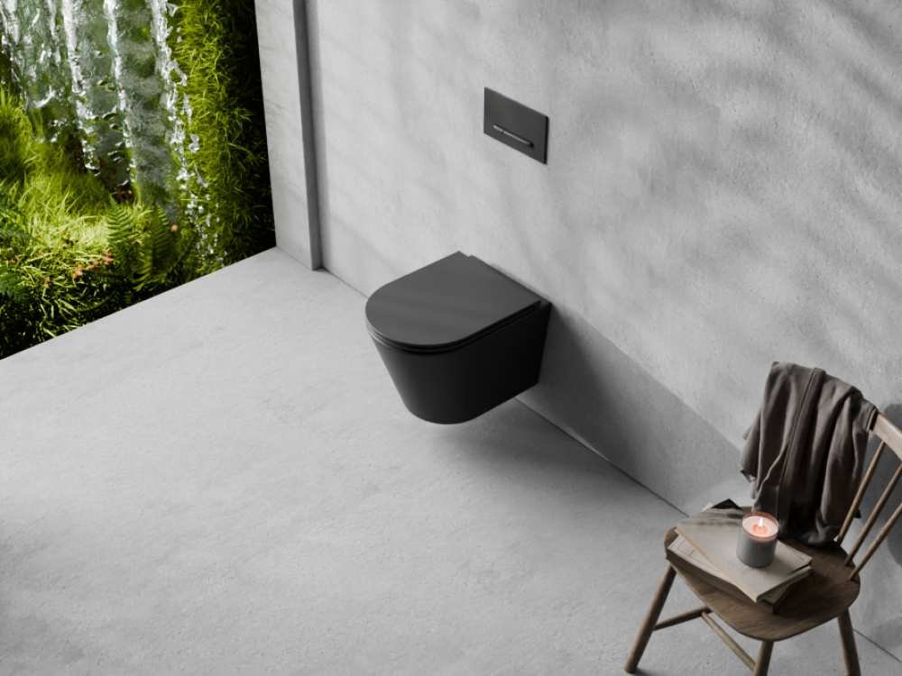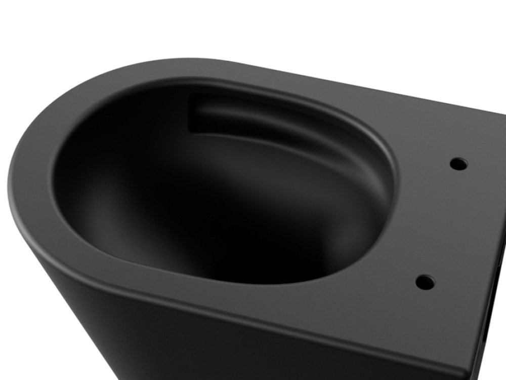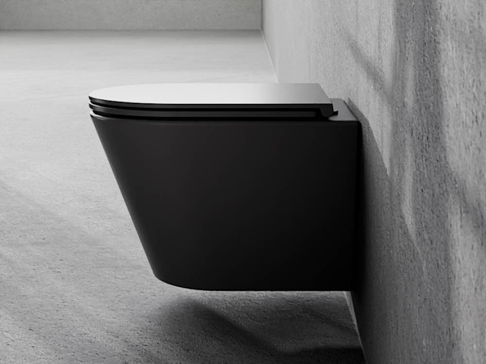 Elegantný zavesený WC set Besco Laax Matt Black v modernom matnom čiernom prevedení kombinujúci bezokrajovú keramickú misu s inovatívnym systémom spľukovania Silent Tornado a odolnú duroplastovú desku s tichým zatváraním. Ideálny pre minimalistické a dizajnové kúpeľne, ktoré kladú dôraz na hygienu, úsporu vody a prémiový vzhľad.