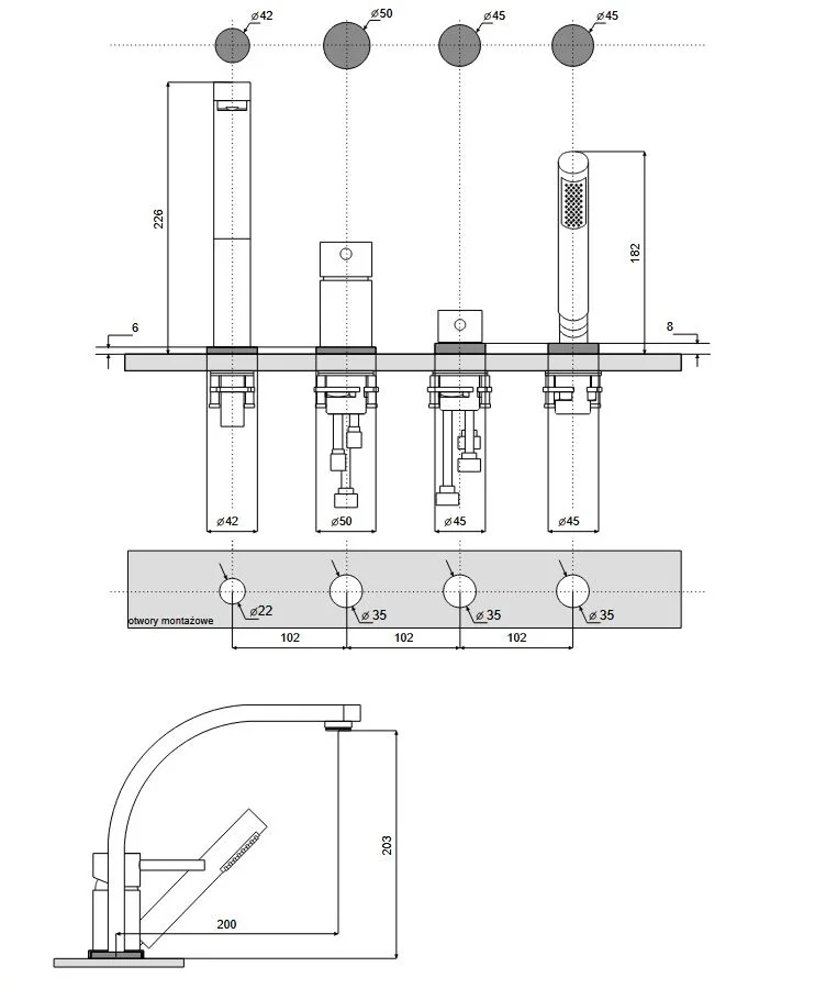 4-otvorová vaňová batéria Besco Decco prináša elegantné a praktické riešenie pre moderné kúpeľne. Montáž na okraj vane pôsobí čisto a luxusne, pričom všetky ovládacie prvky sú pohodlne dostupné.