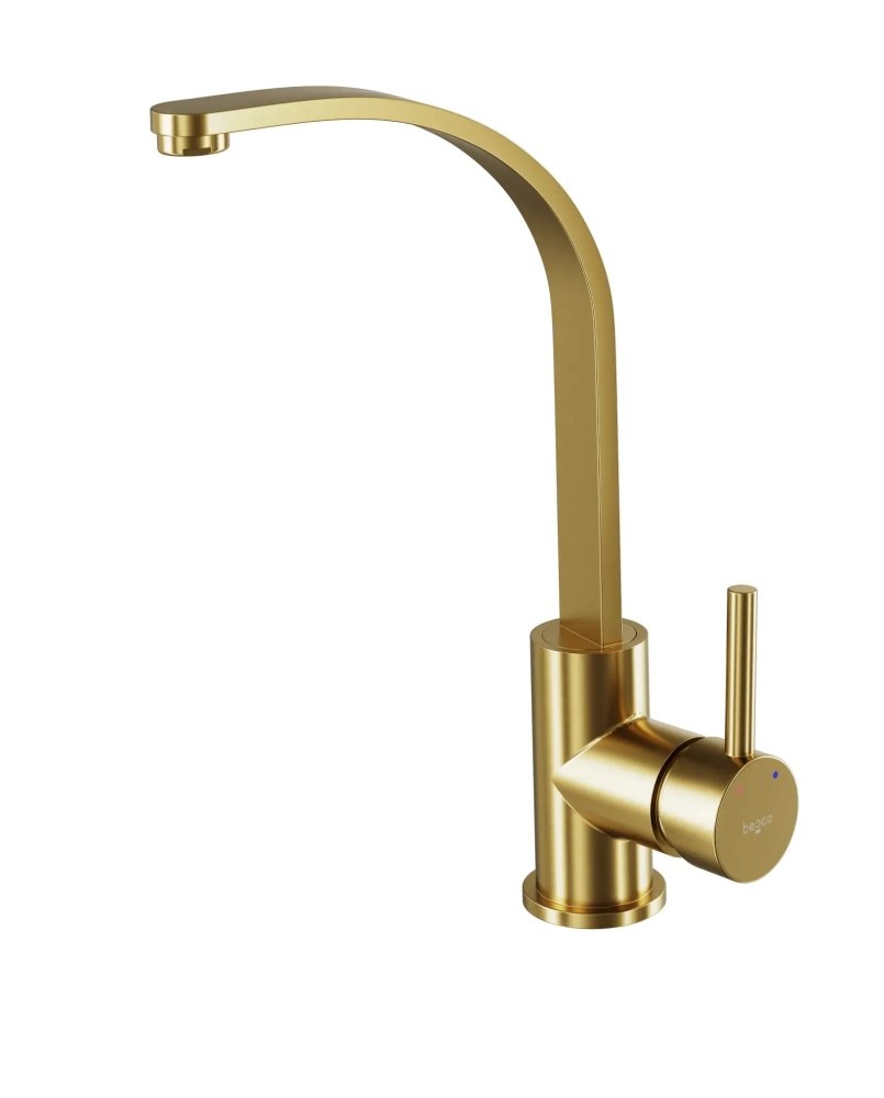 Umývadlová batéria vysoká Besco DECCO I brúsená zlatá je ideálnou voľbou pre moderné kúpeľne s umývadlami na dosku. Vysoké prevedenie poskytuje dostatok priestoru pre pohodlné používanie a zároveň pôsobí elegantne a nadčasovo.