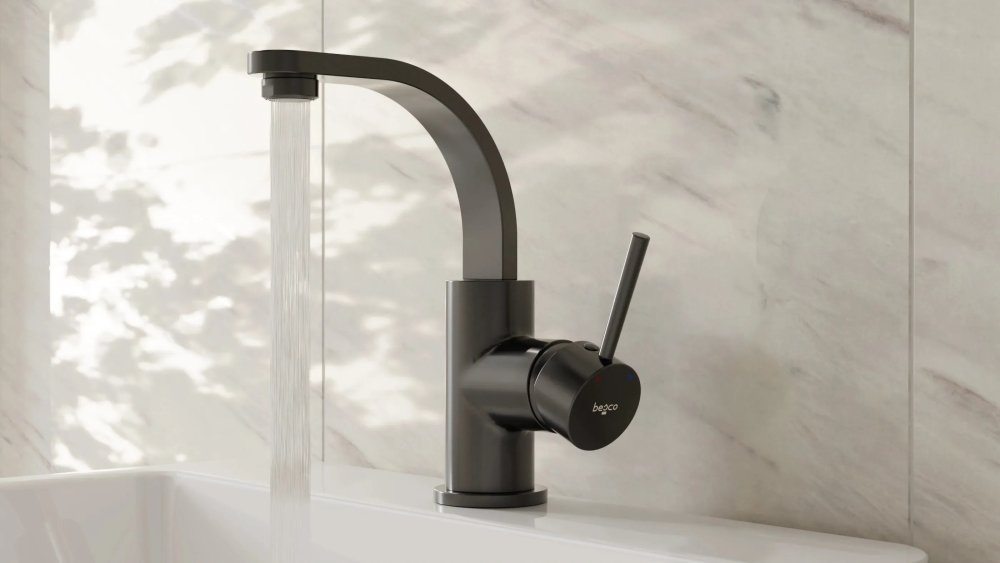 Umývadlová batéria Besco DECCO II v gun metal prevedení je ideálnou voľbou pre moderné kúpeľne, kde sa spája estetika s praktickosťou. Charakteristickým prvkom je otočné výtokové ramienko, ktorá zvyšuje flexibilitu pri používaní – ideálne napríklad pri umývaní väčších predmetov alebo čistení umývadla.