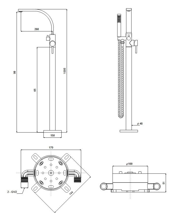 Výška batérie približne 100,5 cm zabezpečuje pohodlné napúšťanie vane a maximálny komfort pri používaní. Montáž je riešená ako podlahová s využitím systému Easy-Box, ktorý umožňuje jednoduchú, rýchlu a presnú inštaláciu.