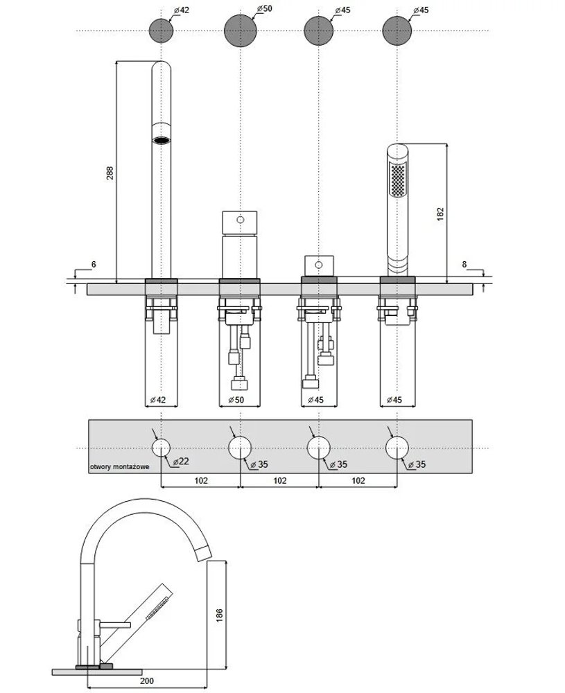 - Typ produktu: vaňová batéria (4-otvorová)