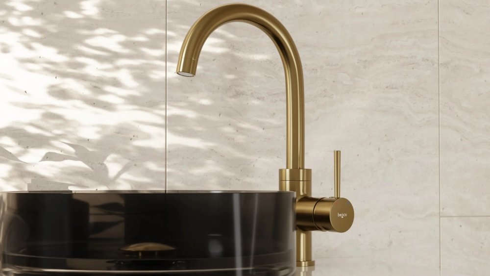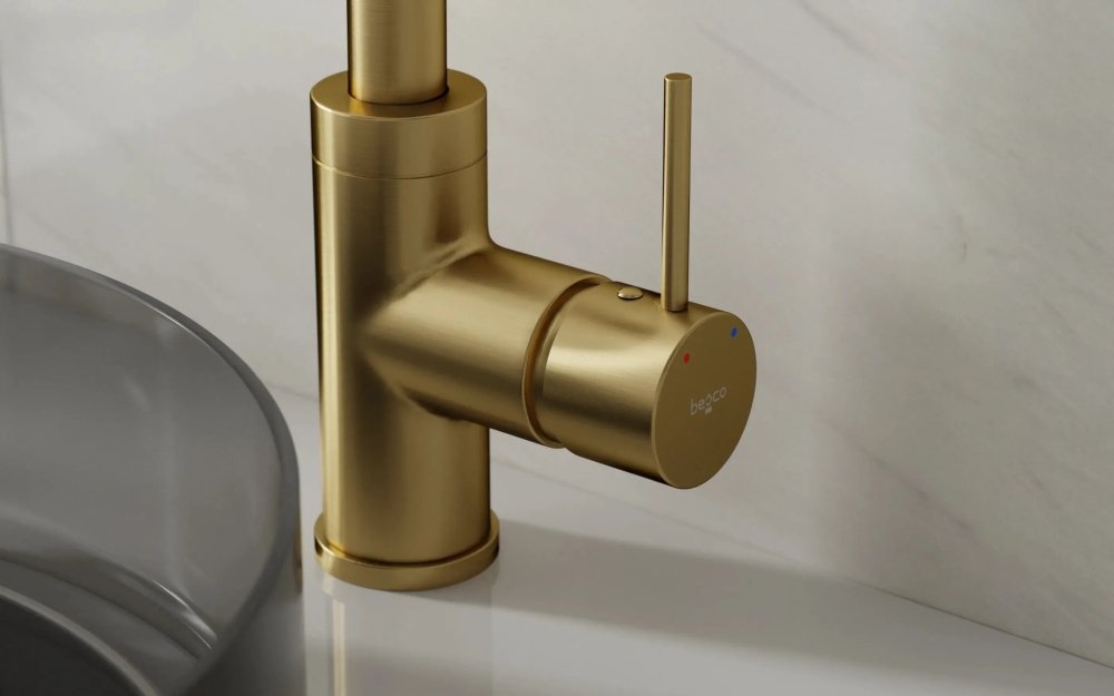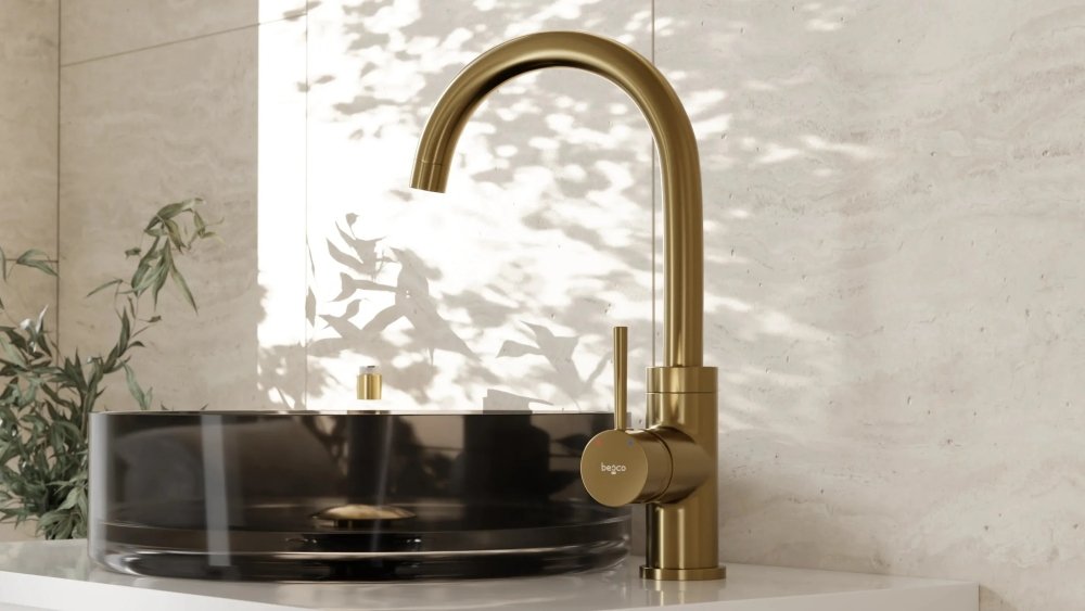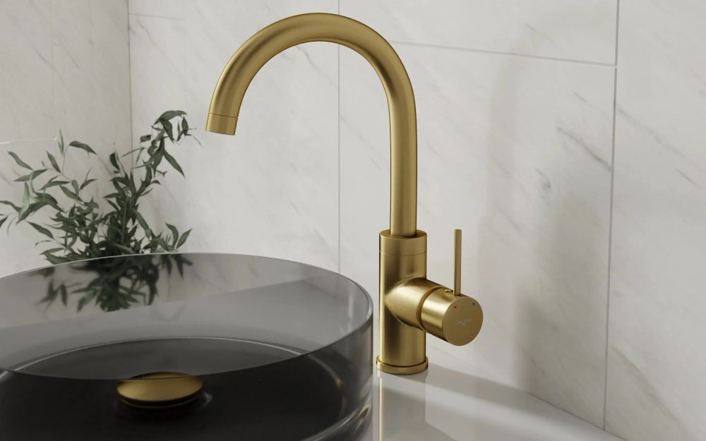 Besco ILLUSION I umývadlová vodovodná batéria, vysoká brúsená zlatá BU-II-ZS - brúsená zlatá