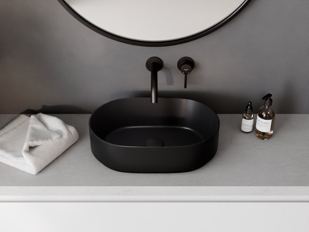 Besco CeraBe LOVA CERA-LINE Matt Black keramické umývadlo na dosku 46 x 31 cm UNCM-46-LOC - Čierna matná