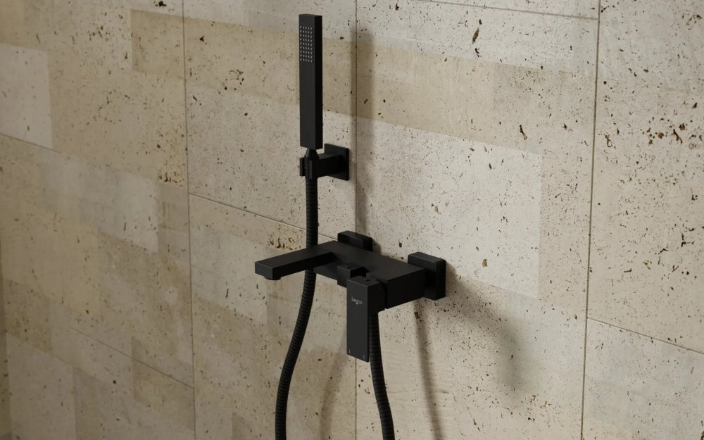 Vaňová nástenná batéria Besco Modern / Varium v matnom čiernom prevedení prináša moderný minimalistický dizajn a vysokú kvalitu spracovania. Vyrobená zo 100 % mosadze zaručuje dlhú životnosť a odolnosť voči korózii. Vďaka keramickej kartuši Kerox ponúka plynulé a presné ovládanie bez kvapkania. Súčasťou je praktický prepínač vaňa/sprcha a kompletný sprchový set vrátane hadice, ručnej sprchy a držiaka. Ideálne riešenie pre elegantnú a funkčnú kúpeľňu.