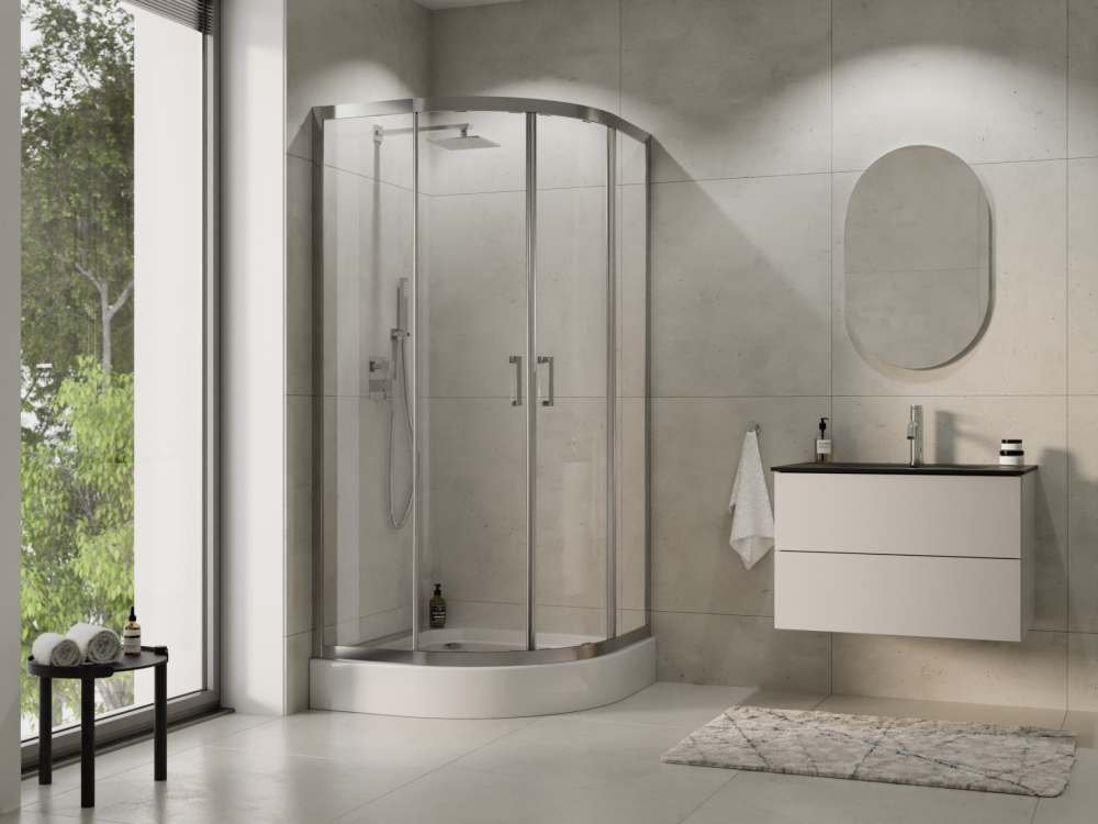 Tvary sprchového kúta: polkruhový s polomerom R 55 cm – ideálny pre optimalizáciu priestoru.