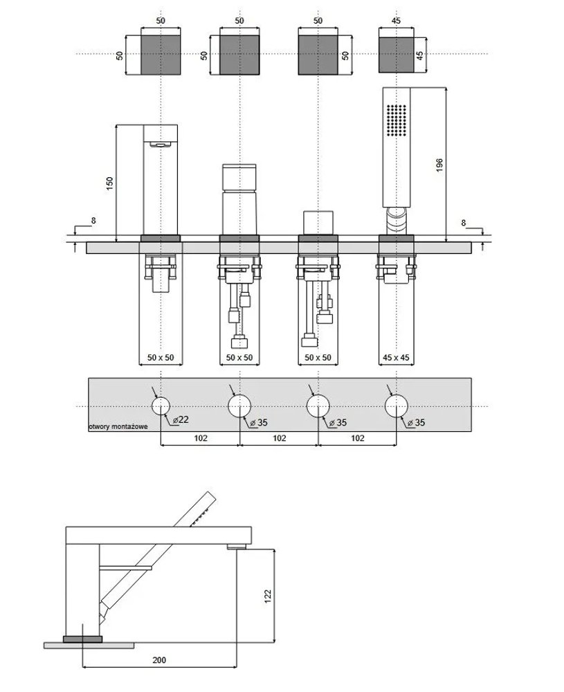 - Montáž: na okraj vane (stojanková)