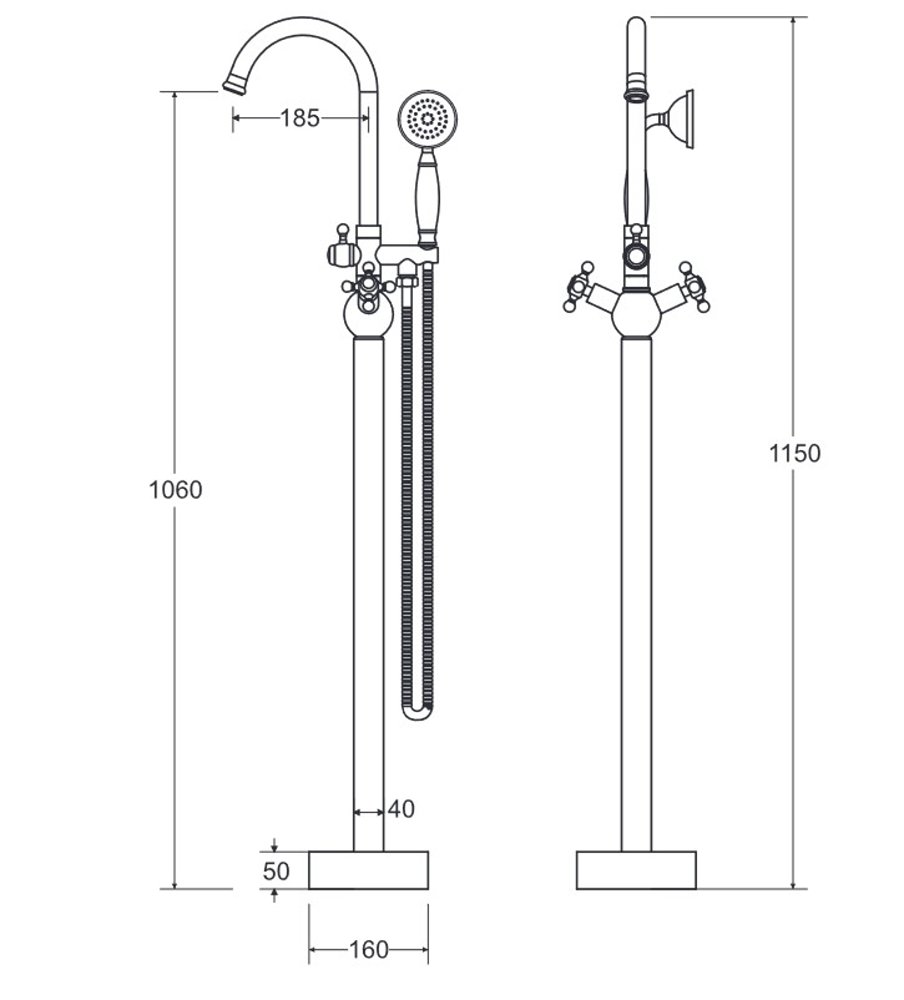 BESCO RETRO I vaňová voľne stojaca batéria BW-RI-CZ - prevedenie čierna matná