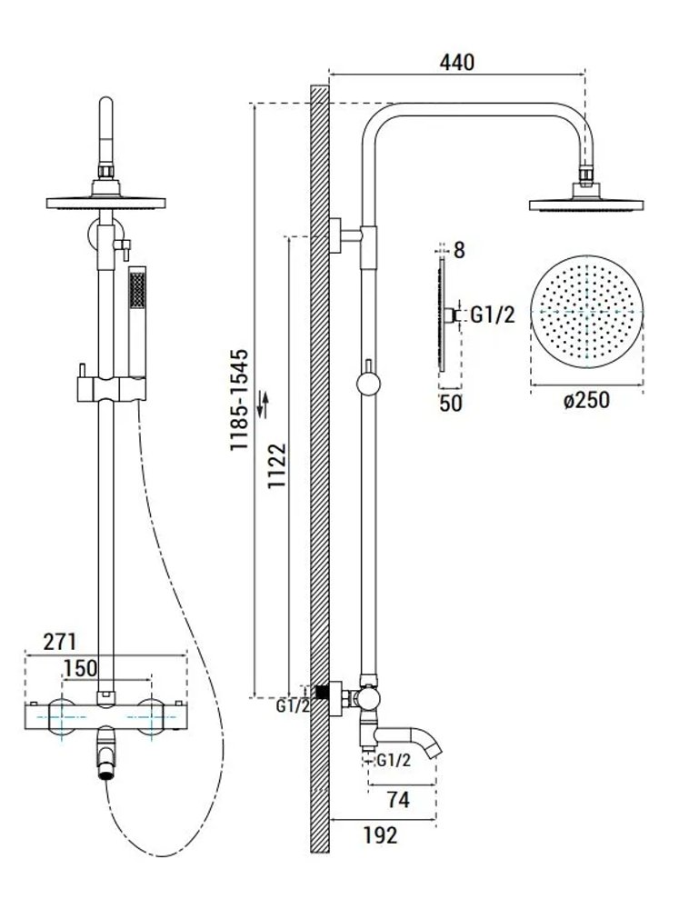- Dĺžka sprchovej hadice: cca 150 cm