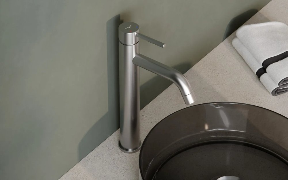 Umývadlová batéria vysoká Besco VEO I brúsený nikel je ideálnym riešením pre moderné kúpeľne s umývadlami na dosku. Vysoké prevedenie poskytuje dostatok priestoru pre pohodlné používanie a zároveň pôsobí elegantne a luxusne.