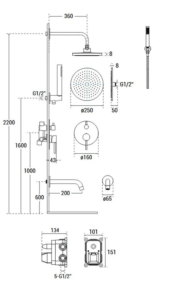 Set obsahuje kompletné vybavenie pre pohodlné sprchovanie – podomietkovú batériu s montážnym boxom, hlavovú sprchu, ručnú sprchu, sprchovú hadicu (cca 150 cm) a nástenný vývod s držiakom.