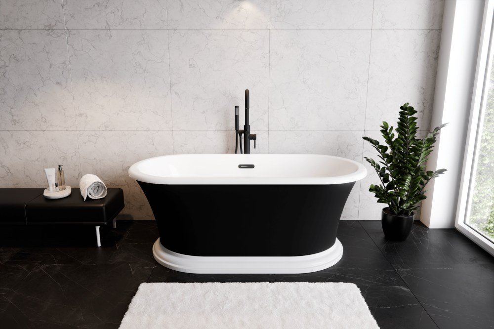 Besco ZIVA B&W Matt voľne stojaca akrylátová vaňa s prepadom, biely podstavec 160 x 75 cm, #WMA-160ZBSW
