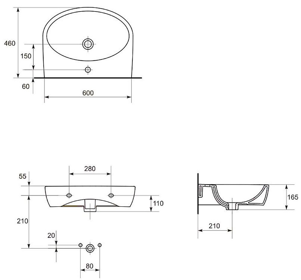 Cersanit PARVA umývadlo keramické nástenné 60 x 45 cm K27-031