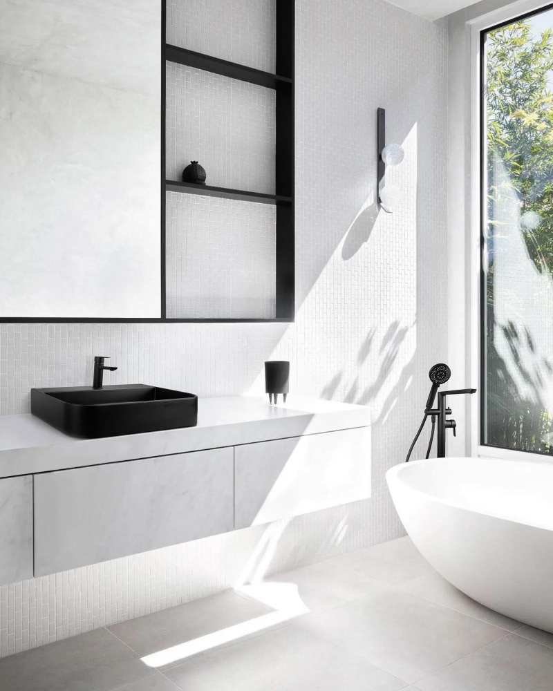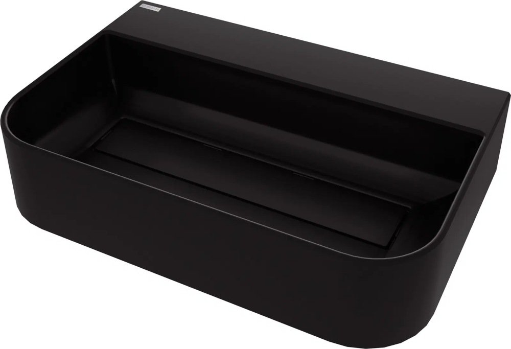 Umyvadlo má čisté línie, predný okraj jemne zaoblený pre väčší komfort a hladkú výpovednú silu. Nero (čierna matná) farba pôsobí vzdušne, nadčasovo a umožňuje kombinovať s rôznymi dekoráciami kúpeľne. Kryt odtoku, vyrobený z rovnakého materiálu, dodáva súlad bez rušivých kovových prvkov.