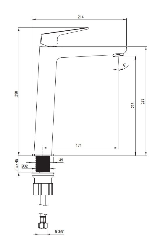 Pripojenie: 3/8" + hadičky (dĺžka 450 mm) sú súčasťou balenia