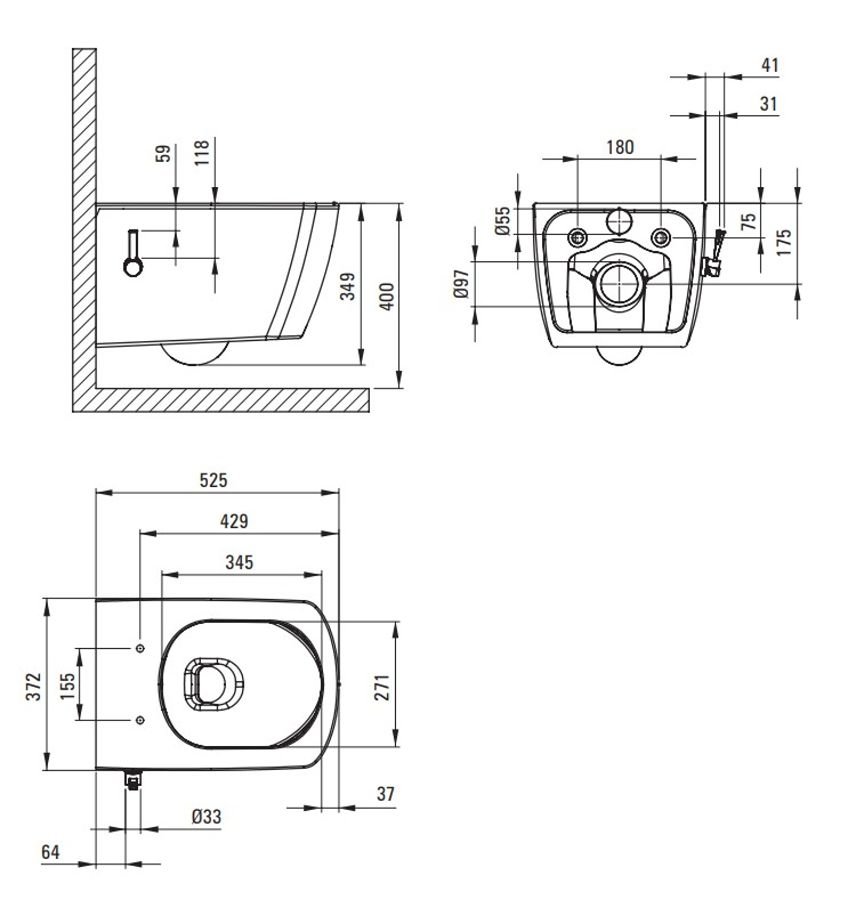 Typ splachovania: bezokrajová misa („rimless“) – uľahčuje čistenie a zvyšuje hygienu