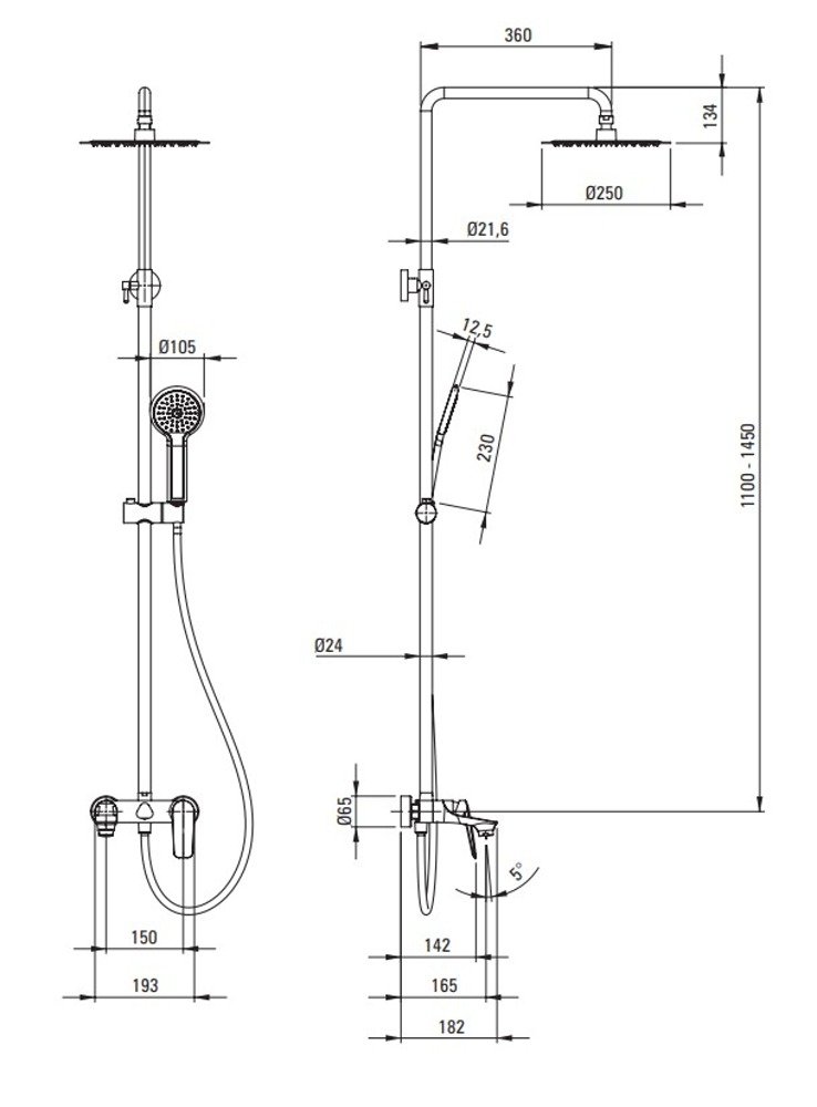 Dominantou setu je veľká horná dažďová sprcha, ktorá zabezpečuje príjemný, rovnomerný prúd vody a maximálny relax. Ručná sprcha poskytuje flexibilitu pri každodennom používaní. Nastaviteľná výška tyče umožňuje prispôsobenie podľa výšky používateľa aj priestoru kúpeľne.