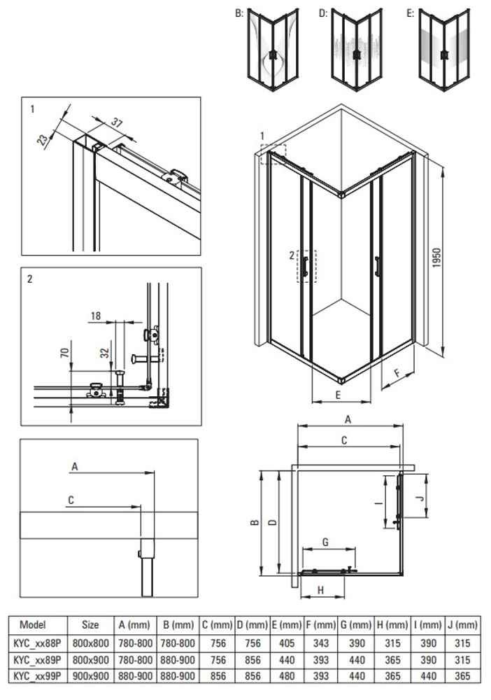 Deante FUNKIA EVO sprchový kút 90 x 80 x 195 cm sklo číre, profil titanium KYC_D089P - Titanium