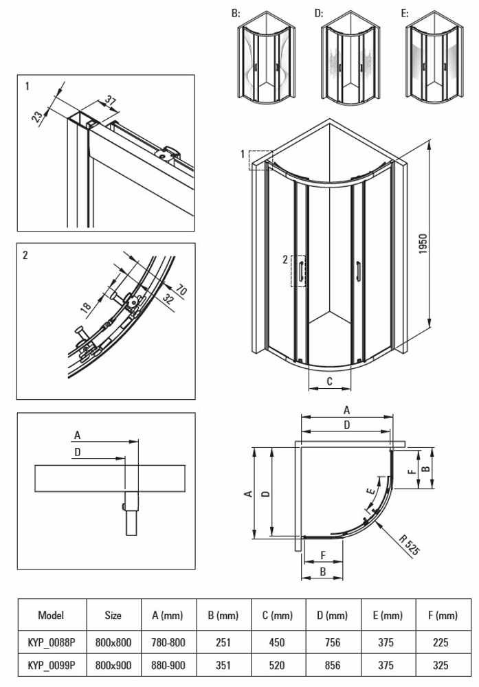 Montáž je flexibilná: kabínu môžete namontovať buď na sprchovú vaničku, alebo priamo na dlažbu. Profily umožňujú kompenzovať nerovnosti stien, čo zjednodušuje inštaláciu a výsledný efekt je veľmi estetický. Dvojité ložiskové rolky zaisťujú plynulé otváranie dverí, dolné rolky sú vypínateľné pre jednoduché čistenie.