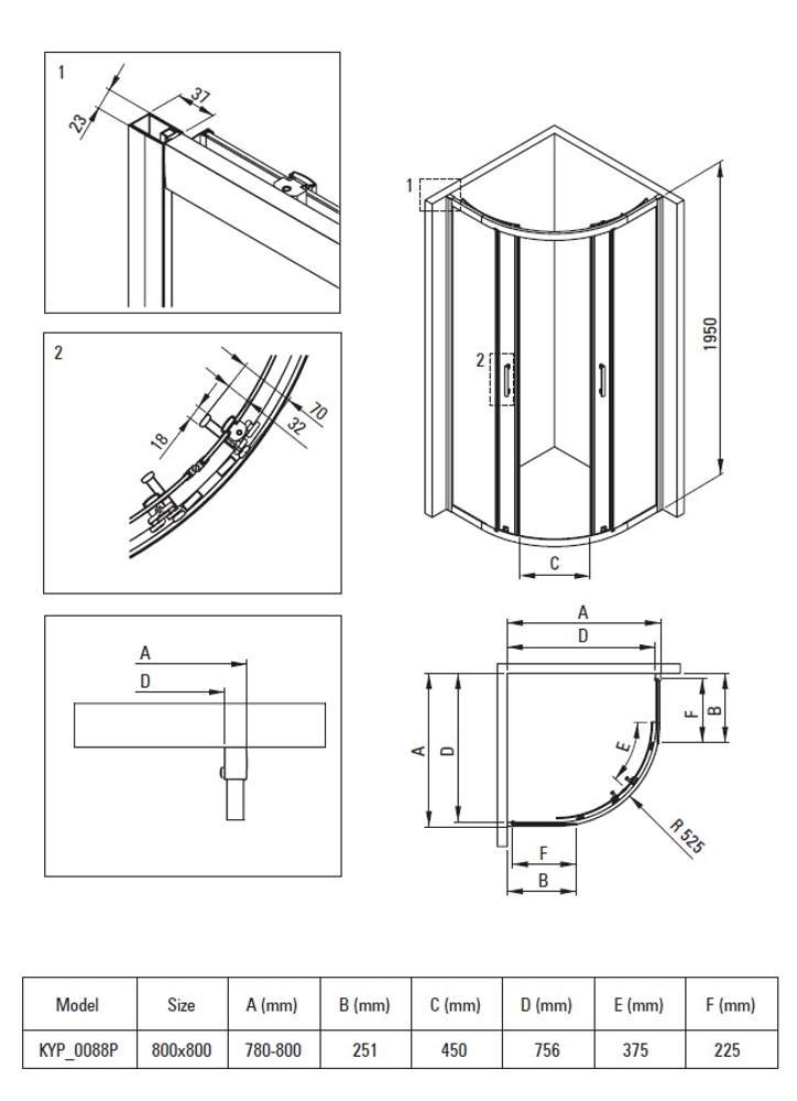 Deante FUNKIA EVO štvrť-kruhový sprchový kút s vaničkou 80 x 80 x 195 cm, sklo číre, profil chróm KYPP0088P - Chróm