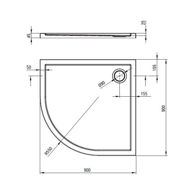 Úspora miesta – 90×90 cm rozmery a polkruhový tvar sú perfektné do rohov malej aj stredne veľkej kúpeľne.
