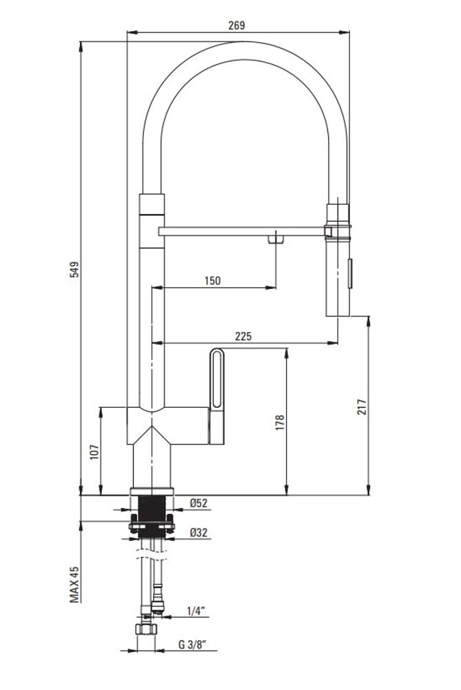 Technické parametre sú veľmi praktické: prietokový rozsah v triede Z (4–9 l/min) znamená, že batéria je navrhnutá s ohľadom na úsporu vody, zatiaľ čo akustická trieda I (≤ 20 dB) zaručuje tichú prevádzku. S keramickou hlavicou Ø 35 mm je ovládanie plynulé a presné. Prípojné hadice majú dĺžku 600 mm s závitmi 3/8″ a M10, čo zjednodušuje inštaláciu. Výška batérie je 549 mm, čo poskytuje dostatočný priestor pod výlevkou.