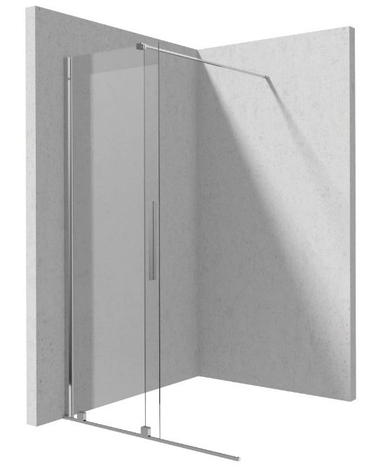 Moderná Deante Prizma 80 cm posuvná sprchová stena walk-in, ktorá kombinuje minimalistický dizajn, bezpečné 6 mm tvrdené sklo a hydrofóbnu úpravu Active Cover pre ľahkú údržbu. Chrómové profily a dve konzoly (krátka + dlhá) zaručujú stabilitu, pričom možnosť montáže priamo na obklady (bez vaničky prináša elegantné riešenie pre vašu kúpeľňu.