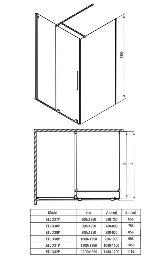 | Tvar | Obdĺžnikový sprchový kút (kombinácia pevnej steny + posuvné dvere) |
