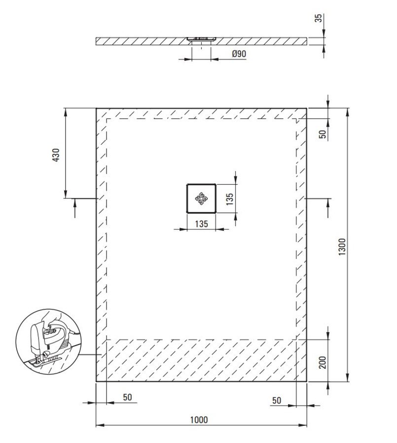 Vďaka nízkej výške (3,5 cm) je vaničku možné zabudovať na úrovni podlahy, čo umožní vytvoriť bezbariérový sprchový kút s hladkým prechodom — ideálny do moderných kúpeľní, kúpeľní s dlažbou alebo pre klientov, ktorí hľadajú elegantné, minimalistické riešenie. Možnosť prirezania materiálu (technológia SOLID PLUS) umožňuje prispôsobiť vaničku presne rozmerom sprchového kúta, čo oceníte pri rekonštrukciách alebo atypických priestoroch.