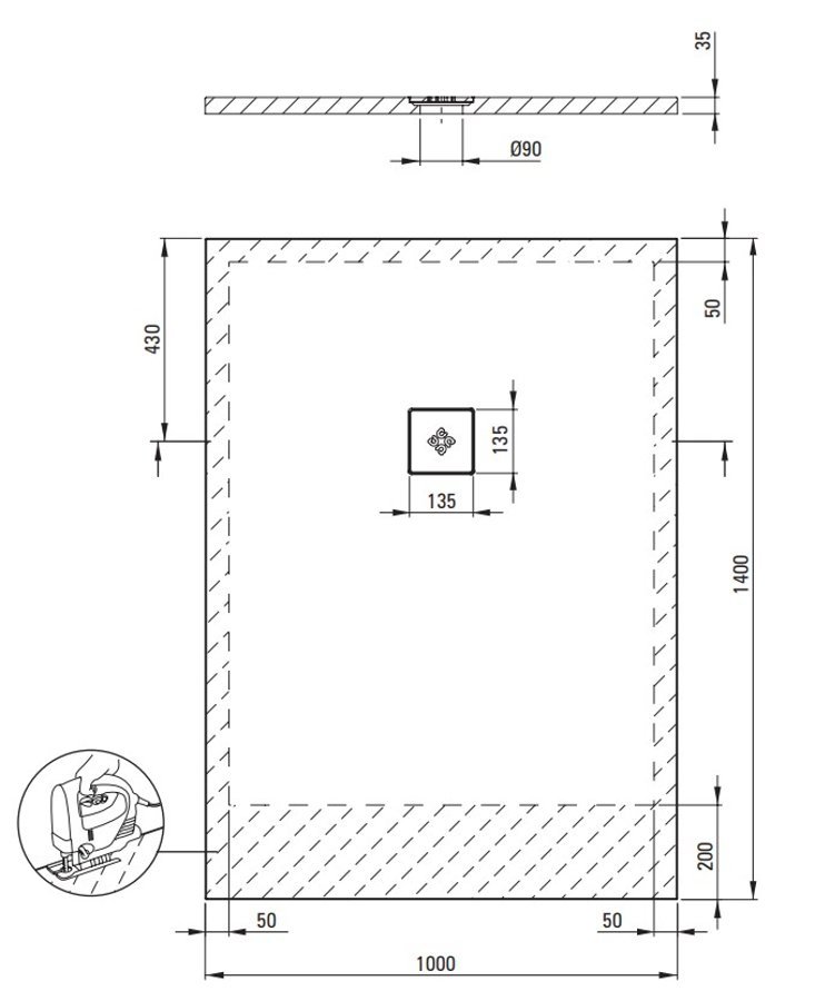 Vďaka nízkej výške (3,5 cm) je vaničku možné zabudovať na úrovni podlahy, čo umožní vytvoriť bezbariérový sprchový kút s hladkým prechodom — ideálny do moderných kúpeľní, kúpeľní s dlažbou alebo pre klientov, ktorí hľadajú elegantné, minimalistické riešenie. Možnosť prirezania materiálu (technológia SOLID PLUS) umožňuje prispôsobiť vaničku presne rozmerom sprchového kúta, čo oceníte pri rekonštrukciách alebo atypických priestoroch.