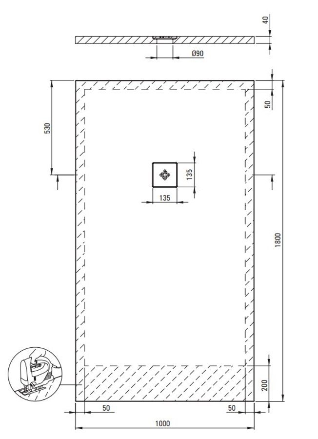 Možnosť úpravy veľkosti: brodzik je možné prirezávať / prispôsobiť (technológia „SOLID PLUS“) — vhodné pri atypických rozmeroch kúpeľne.
