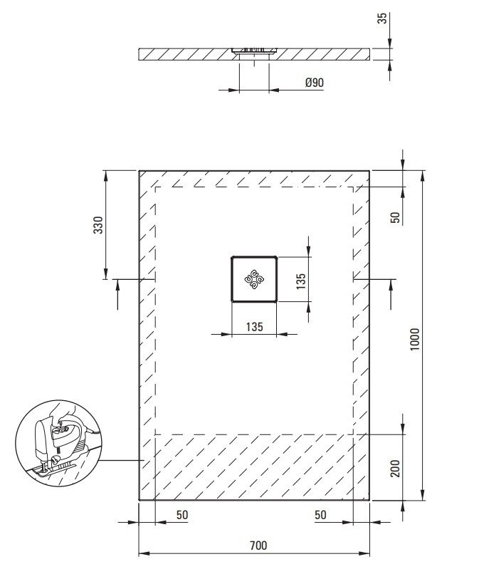 Vďaka nízkej výške (3,5 cm) je vaničku možné zabudovať na úrovni podlahy, čo umožní vytvoriť bezbariérový sprchový kút s hladkým prechodom — ideálny do moderných kúpeľní, kúpeľní s dlažbou alebo pre klientov, ktorí hľadajú elegantné, minimalistické riešenie. Možnosť prirezania materiálu (technológia SOLID PLUS) umožňuje prispôsobiť vaničku presne rozmerom sprchového kúta, čo oceníte pri rekonštrukciách alebo atypických priestoroch.