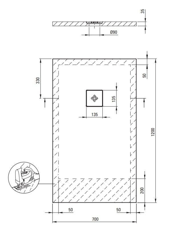 Vďaka nízkej výške (3,5 cm) je vaničku možné zabudovať na úrovni podlahy, čo umožní vytvoriť bezbariérový sprchový kút s hladkým prechodom — ideálny do moderných kúpeľní, kúpeľní s dlažbou alebo pre klientov, ktorí hľadajú elegantné, minimalistické riešenie. Možnosť prirezania materiálu (technológia SOLID PLUS) umožňuje prispôsobiť vaničku presne rozmerom sprchového kúta, čo oceníte pri rekonštrukciách alebo atypických priestoroch.