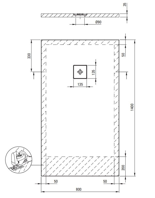 Vďaka nízkej výške (3,5 cm) je vaničku možné zabudovať na úrovni podlahy, čo umožní vytvoriť bezbariérový sprchový kút s hladkým prechodom — ideálny do moderných kúpeľní, kúpeľní s dlažbou alebo pre klientov, ktorí hľadajú elegantné, minimalistické riešenie. Možnosť prirezania materiálu (technológia SOLID PLUS) umožňuje prispôsobiť vaničku presne rozmerom sprchového kúta, čo oceníte pri rekonštrukciách alebo atypických priestoroch.