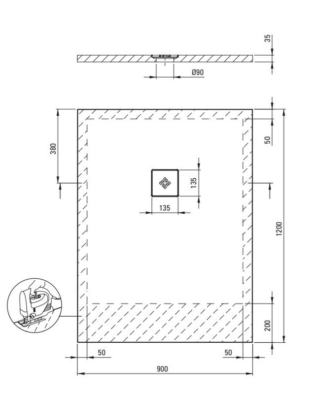 Vďaka nízkej výške (3,5 cm) je vaničku možné zabudovať na úrovni podlahy, čo umožní vytvoriť bezbariérový sprchový kút s hladkým prechodom — ideálny do moderných kúpeľní, kúpeľní s dlažbou alebo pre klientov, ktorí hľadajú elegantné, minimalistické riešenie. Možnosť prirezania materiálu (technológia SOLID PLUS) umožňuje prispôsobiť vaničku presne rozmerom sprchového kúta, čo oceníte pri rekonštrukciách alebo atypických priestoroch.