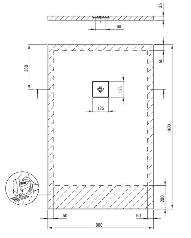 Vďaka nízkej výške (3,5 cm) je vaničku možné zabudovať na úrovni podlahy, čo umožní vytvoriť bezbariérový sprchový kút s hladkým prechodom — ideálny do moderných kúpeľní, kúpeľní s dlažbou alebo pre klientov, ktorí hľadajú elegantné, minimalistické riešenie. Možnosť prirezania materiálu (technológia SOLID PLUS) umožňuje prispôsobiť vaničku presne rozmerom sprchového kúta, čo oceníte pri rekonštrukciách alebo atypických priestoroch.