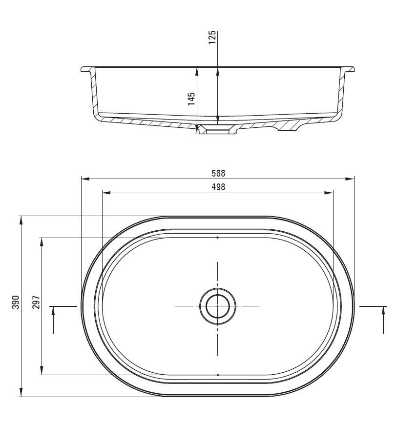Rozmery 390 × 588 × 145 mm robia umývadlo vhodným pre stredne veľké kúpeľne — dostatočne výrazné, no nie príliš masívne. Výška 145 mm poskytuje slušnú hĺbku bez straty komfortu pri používaní.
